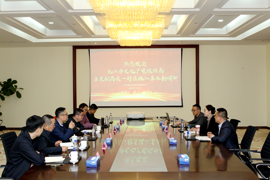 11月1日上午,九江市文化广电旅游局副局长石泉带队来到江苏水韵文化旅游运营有限公司调研。九江市文化广电旅游局广电管理科长陈军民,九江数字产业发展有限公司项目负责人陈长松,中国铁塔九江市分公司党委书记、总经理邹磊等陪同调研。
