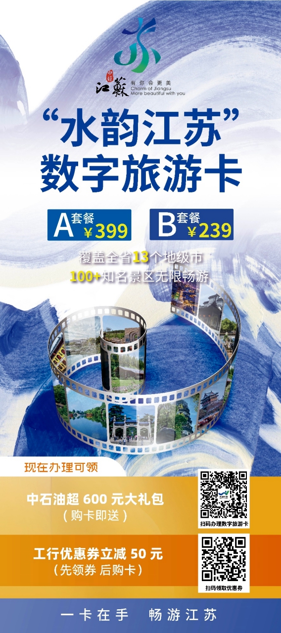 一张数字旅游卡,到底能够承载多少想象力呢?在“基本盘”领域,年底数字旅游卡的覆盖景区将达到200多家。让人更为惊喜的是,通过“文旅+”的资源整合、互动融通,还能为公众不断拓展文旅消费的新场景,叠加更多新权益。未来,看电影、看演出、唱卡拉OK、买文创特产、购书……凡是数字旅游卡用户,均能享受不同幅度的优惠,真正做到“一卡在手,畅游江苏”。
