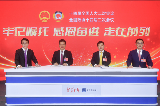 孙力斌委员参加新华报业走进全国两会全媒体访谈节目“今天我主持”,与全国人大代表,徐州市委副书记、市长王剑锋;全国人大代表,徐州博康信息化学品有限公司董事长傅志伟一起,聚焦推进新型工业化主题进行交流