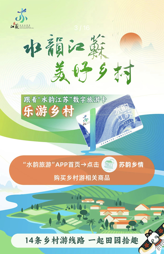4月20日,由江苏省文化和旅游厅、江苏省农业农村厅主办的第十五届江苏省乡村旅游节正式启动。江苏水韵文化旅游运营有限公司在省文旅厅指导下,精心挑选重点村镇,结合旅游年卡合作景点,设计开发14条游玩线路,助力乡村旅游节,广受好评。